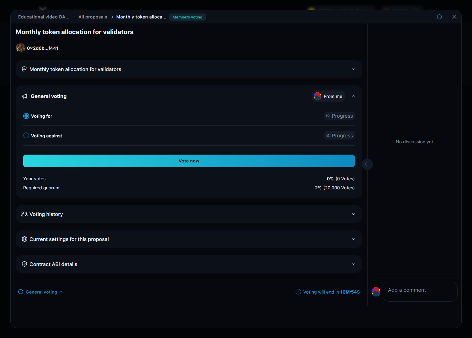 Once live, participate in discussions around your voting changes proposal. If the quorum is reached, the new parameters will go into effect after execution.